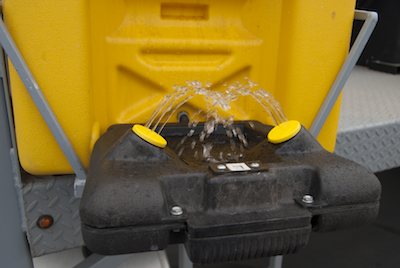 - When you are using a pesticide and the label requires eye protection, your employer must provide an emergency eye-flushing station at the mixing/loading site. It must provide enough water to allow for 15 minutes of eye-flushing in case of emergency. Also, you must carry some water with you (at least one pint) for emergency eye flushing in the field.